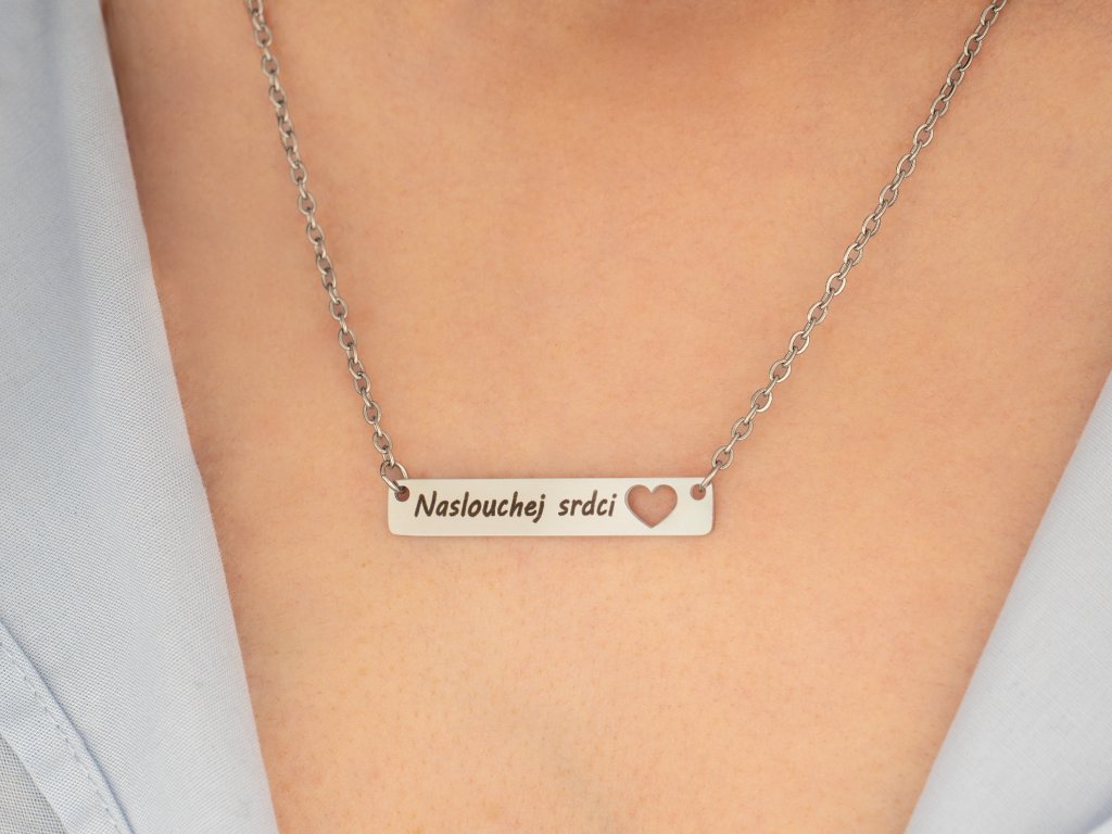 Díky jemnému výřezu ve tvaru srdce a možnosti gravírování se z něj stane originální šperk s vaším vlastním příběhem, můžete na něj nechat vypsat jméno, datum, motto či krátký vzkaz.